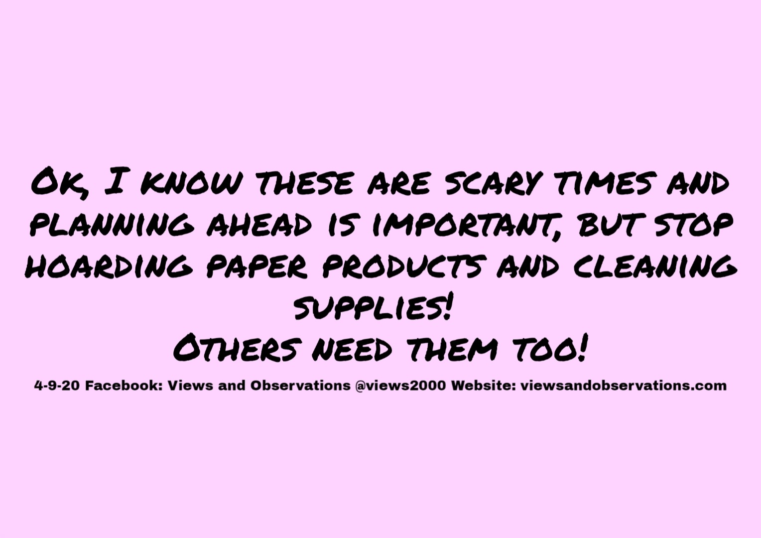 But folks, it is not cool to hoard paper products and cleaning supplies! Frankly, the practice is getting out of control, selfish, thoughtless, and rude.
