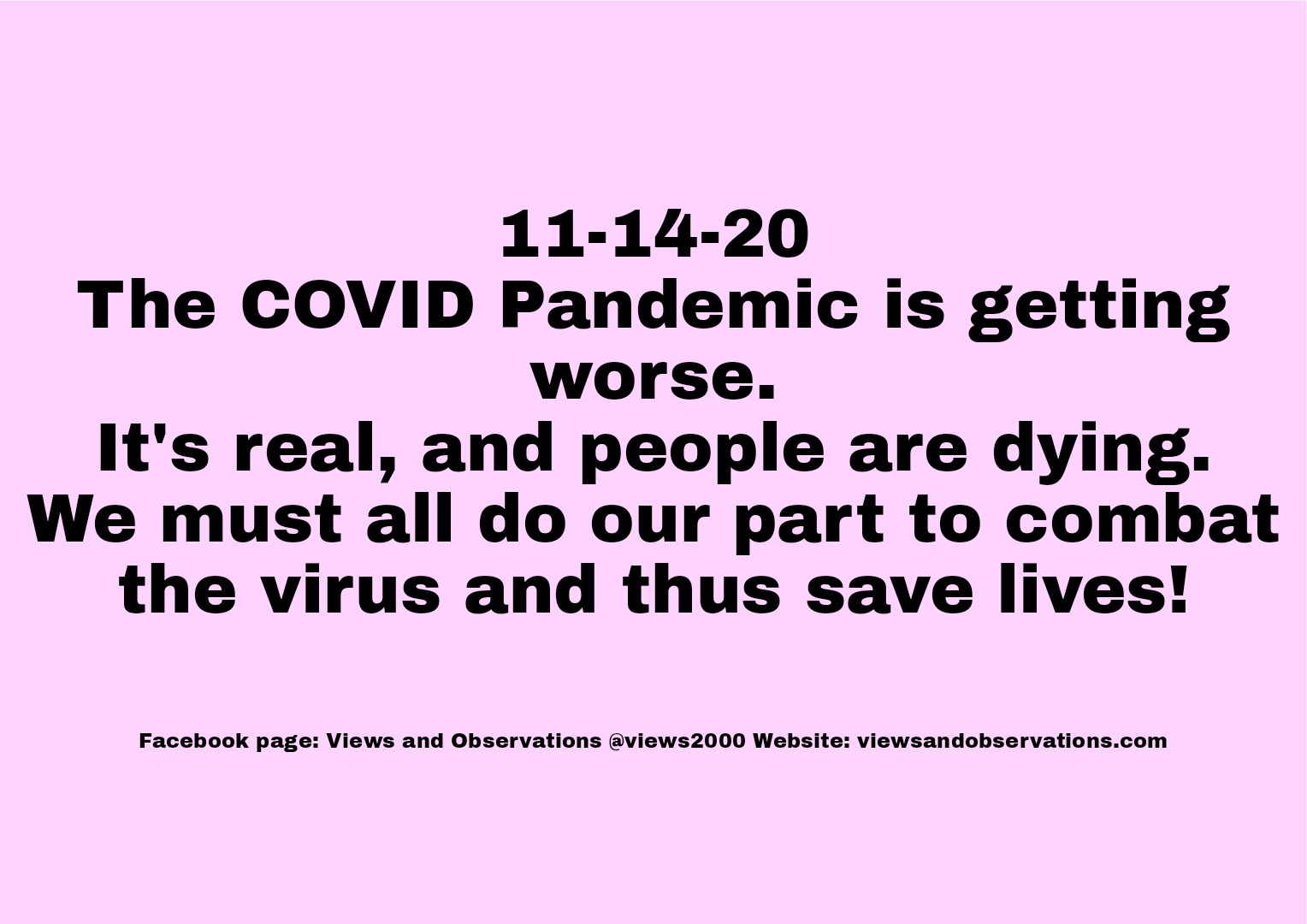 Practice social distancing and mask wearing whenever you are in public. Educate yourself in what you need to do in fighting the pandemic. Avoid big crowds, especially when indoors. Don’t have big holiday gatherings with people coming from all around because doing so would spread the virus.