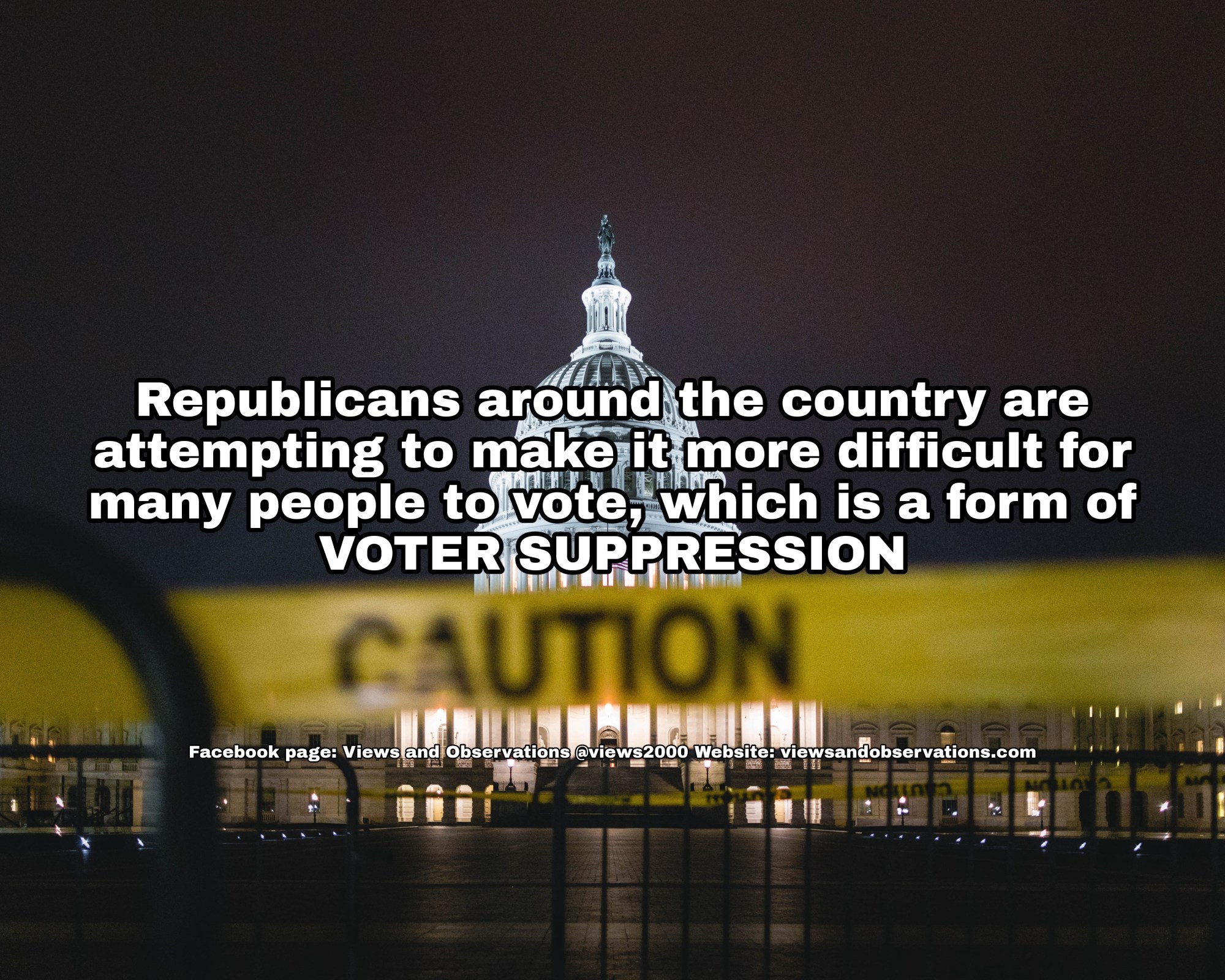 This is clear voter suppression. Republicans are trying to increase the odds that they might win future elections by making it more difficult for those who may vote for Democrats to cast their ballot. This is sick, disgusting, and goes against what democracy is supposed to be about. Frankly, it starts getting dangerously close to authoritarianism and clearly goes against what this country should stand for.
