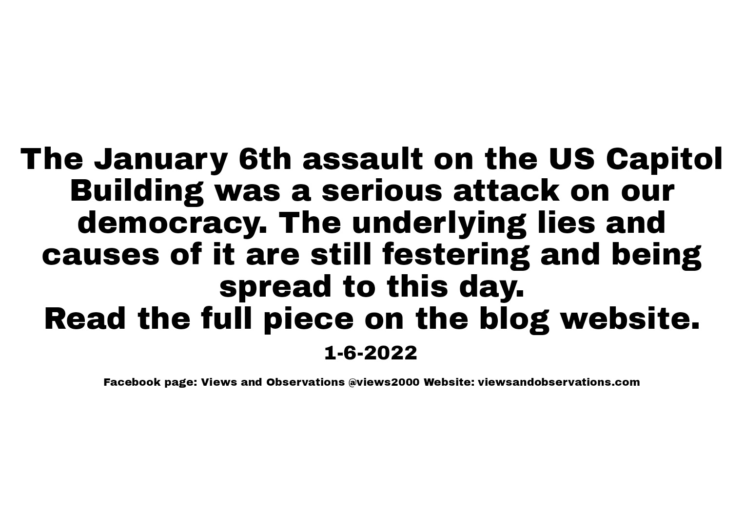1 year ago, an angry mob stormed the United States Capitol Building in an effort to stop Congress from performing it’s Constitutional duty of certifying the 2020 election. This was the first time such a terrible event has occurred in the United States history. And what is even more disturbing is how so many people, many of whom are Republicans, are trying to downplay the seriousness of the assault.