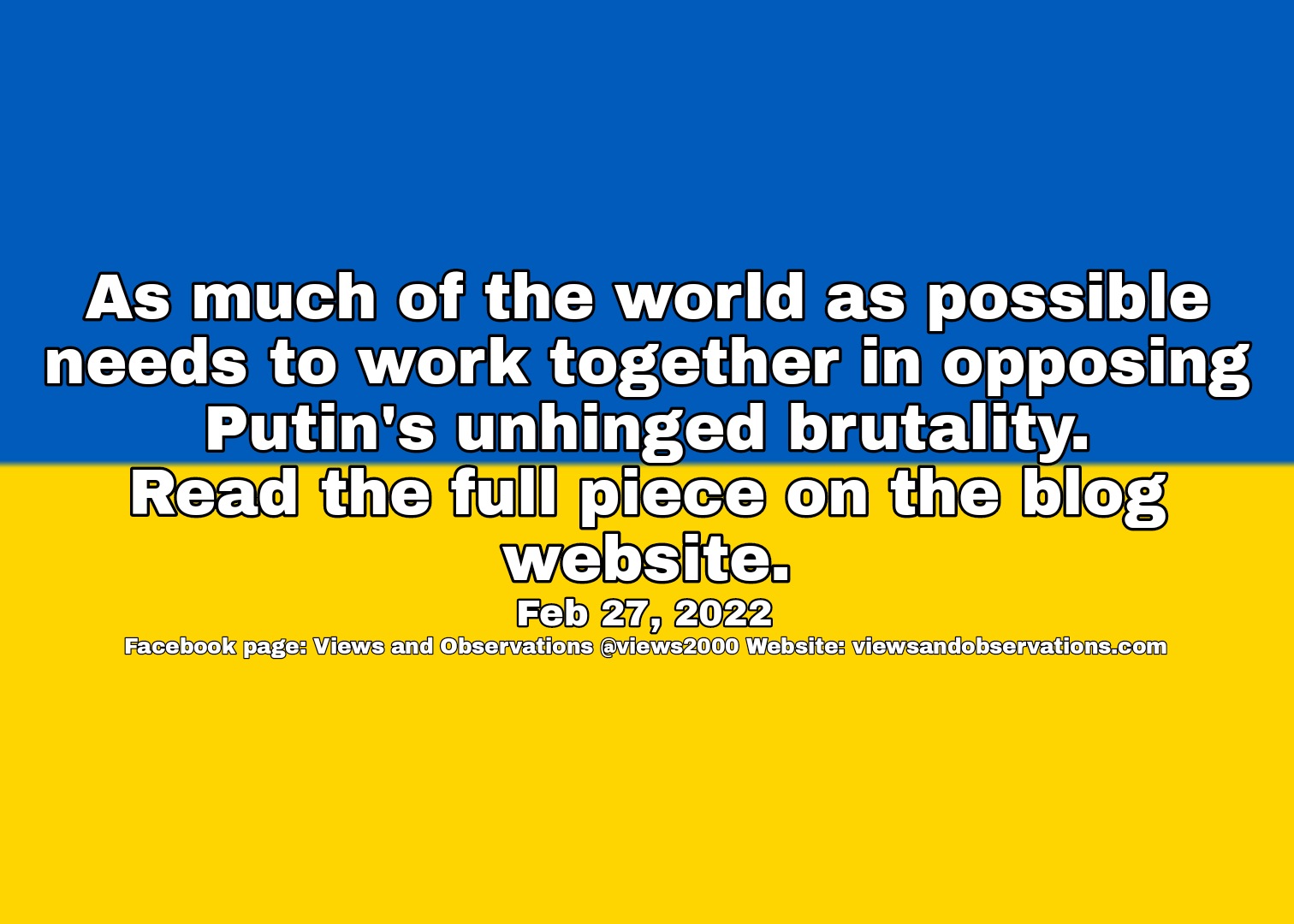 Vladimir Putin is clearly a barbaric, ruthless authoritarian autocrat who for years has had a reputation of being cold blooded and calculating in his quest to enhance and expand his power. He has imprisoned and killed political opponents as well as established significant control over Russian media. It’s also become quite clear how he desperately wants to reestablish as much dominance and control over former Soviet republics as he can because he views the dissolution of the Soviet Union as a catastrophic event. Another factor that is likely playing a role is that Russian power in the world has been decreasing while that of other countries such as China has been rising. But what is more disturbing is how it seems Putin has become increasingly unhinged, desperate, and likely surrounded by individuals who never disagree with him. It’s obvious that he has despised and fumed at seeing an independent Ukraine which has become more democratic and closer to the European Union while growing increasingly distant from Russia. This toxic soup of Putin’s led to his seizure of Crimea in 2014 and his instigation of Russian separatists in the Donbas region. These actions pushed Ukraine even closer to the West and more distant from Russia. And now we have Putin’s brutal, unwarranted Russian invasion, a blatant move of bloody aggression as he attempts to impose even more dominance and control over Ukraine. Furthermore, what’s also dangerously disturbing is that considering Putin’s attitude regarding former Soviet republics (don’t forget that he already seizured part of Georgia), it’s obvious that he doesn’t intend to stop with Ukraine.