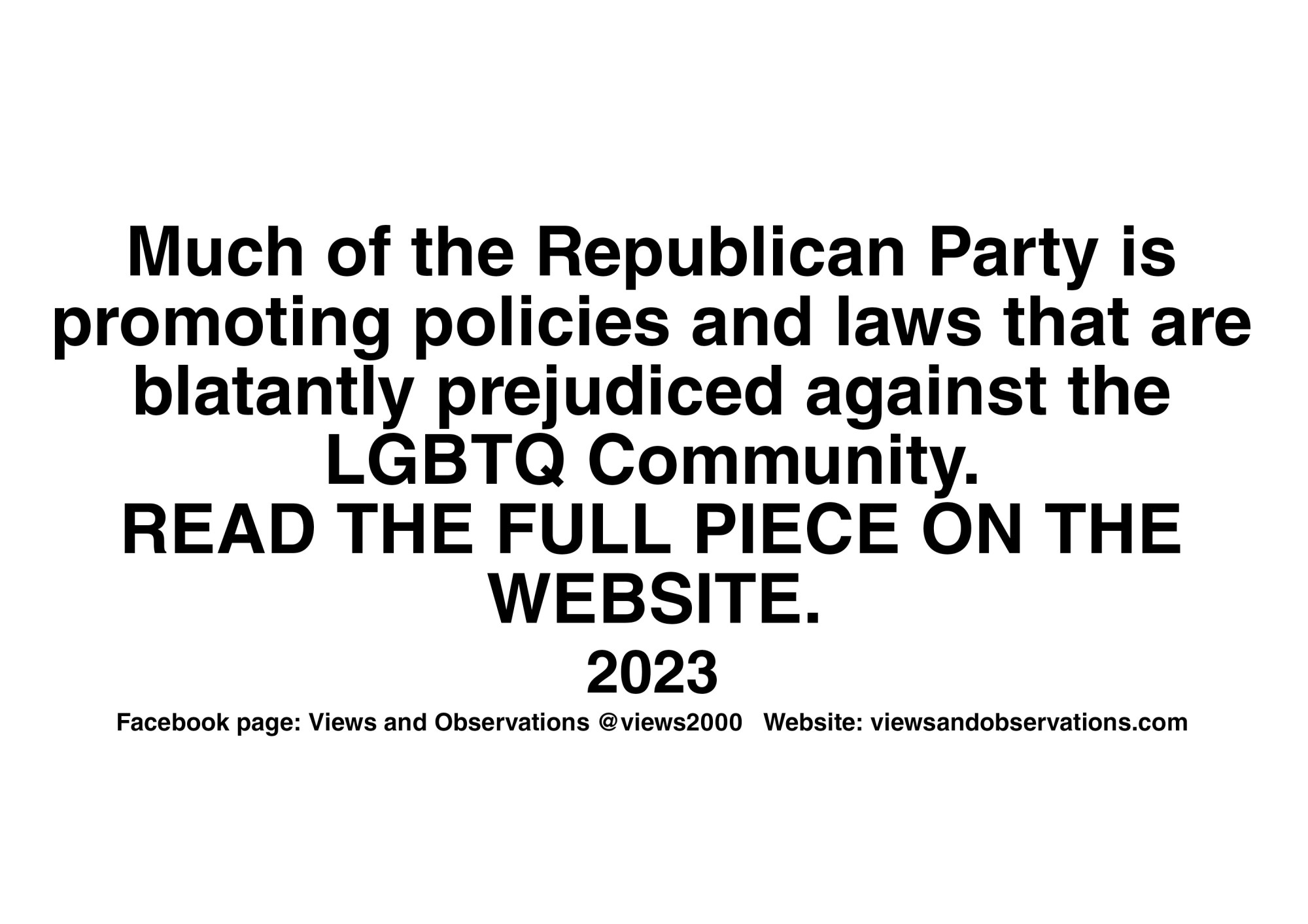 This wave of anti-LGBTQ sentiment and policy being promoted by the Republican Party is based on ignorance, intolerance, and blatant prejudice. It is worsening the quality of life of LGBTQ people and will undoubtedly increase suicide rights. This is why we all need to stand against the bigotry being blatantly pushed by the Republican Party. It’s important for people to speak out when they can in order to make it clear that such horrendous prejudice will not be tolerated. Trying to spend our money in places and businesses that are pro-LGBTQ and avoiding those that are anti-LGBTQ is another tactic we can utilize. When considering going on vacation, instead of going to a place like Florida (which is passing anti-LGBTQ bills into law), consider going to a state like California instead.
