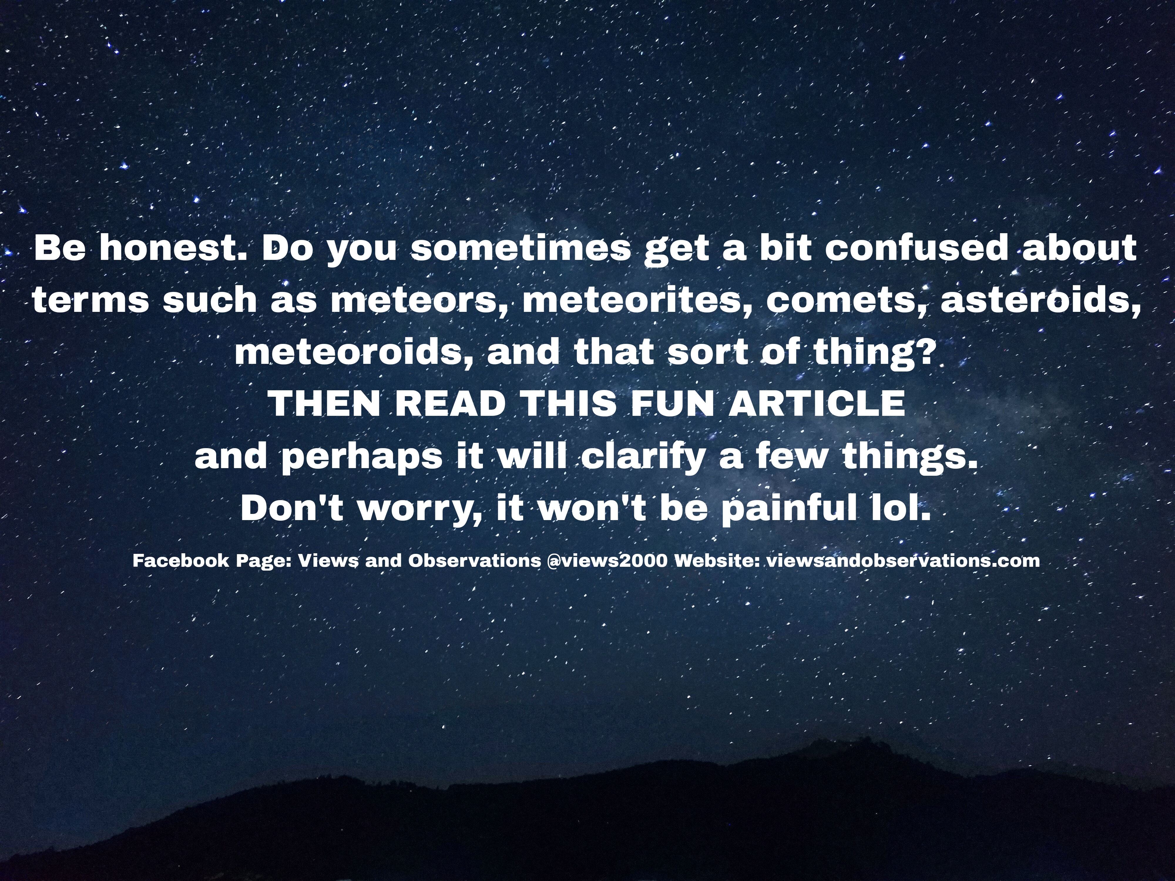 Here’s a fun overview of celestial bodies in our solar system. We go into asteroids, the Kuiper Belt, Oort Cloud, and comets, explaining their characteristics and origins. We also discuss meteoroids, meteors, and meteorites. The piece aims to improve readers’ understanding of astronomical terms and our universe in a fun way. CLICK ON THE LINK FOR THE FULL ARTICLE.