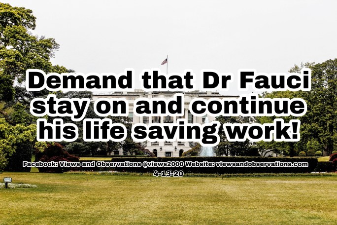 Dr Fauci's wisdom and honesty are desperately needed during this pandemic