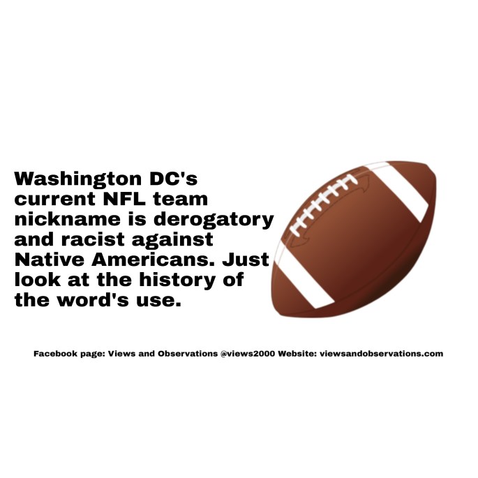 The current DC NFL team nickname is a derogatory, racist slur aimed against Native Americans